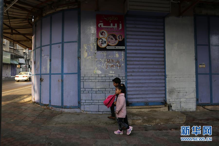 1月29日,在加沙地带南部的汗尤尼斯,巴勒斯坦儿童走过一家关门的商店。 美国总统特朗普28日公布了所谓推动解决巴勒斯坦与以色列问题的“世纪协议”后,巴勒斯坦方面明确表示拒绝协议的全部内容,大批民众举行罢工、游行等活动,抵制该协议。 新华社发(亚西尔摄)