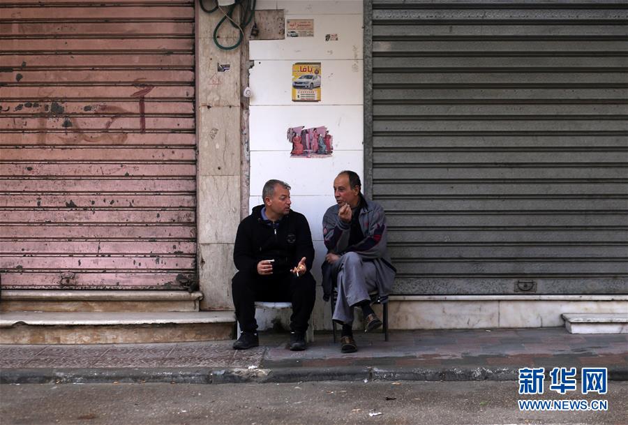 1月29日,在加沙地带南部的汗尤尼斯,巴勒斯坦民众坐在关门的商店门口。 美国总统特朗普28日公布了所谓推动解决巴勒斯坦与以色列问题的“世纪协议”后,巴勒斯坦方面明确表示拒绝协议的全部内容,大批民众举行罢工、游行等活动,抵制该协议。 新华社发(亚西尔摄)