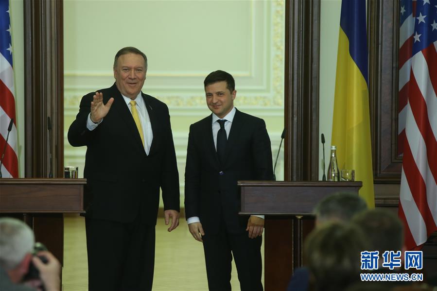 1月31日,在乌克兰基辅,乌克兰总统泽连斯基(右)与美国国务卿蓬佩奥出席联合新闻发布会。新华社发(谢尔盖·斯塔拉斯坚科摄)