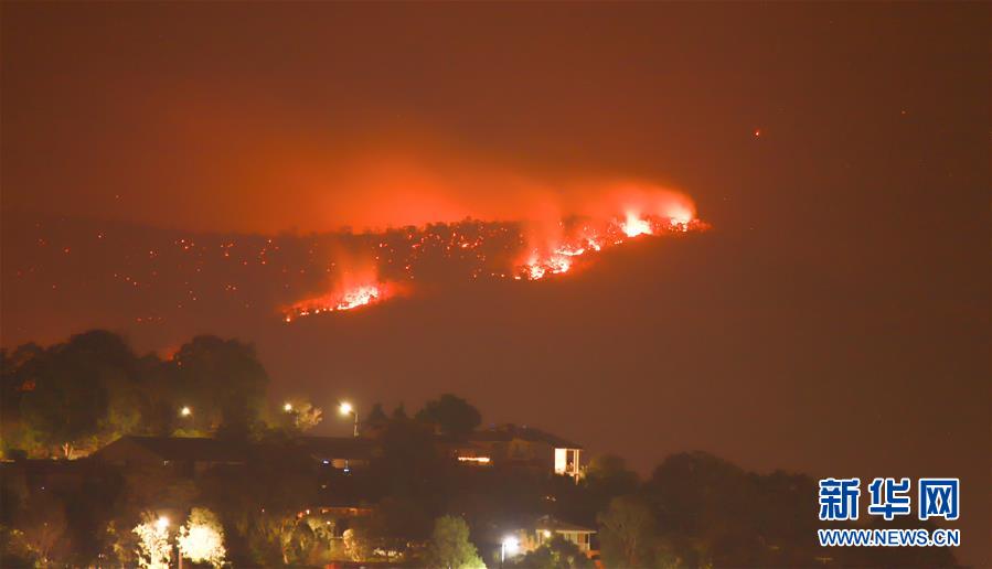 这是1月31日在澳大利亚首都堪培拉拍摄的南部一处国家公园的林火火光 。 澳大利亚首都地区首席部长安德鲁·巴尔31日宣布,由于堪培拉南部一处国家公园的林火威胁,澳大利亚首都地区进入紧急状态。 新华社发(刘畅畅摄)