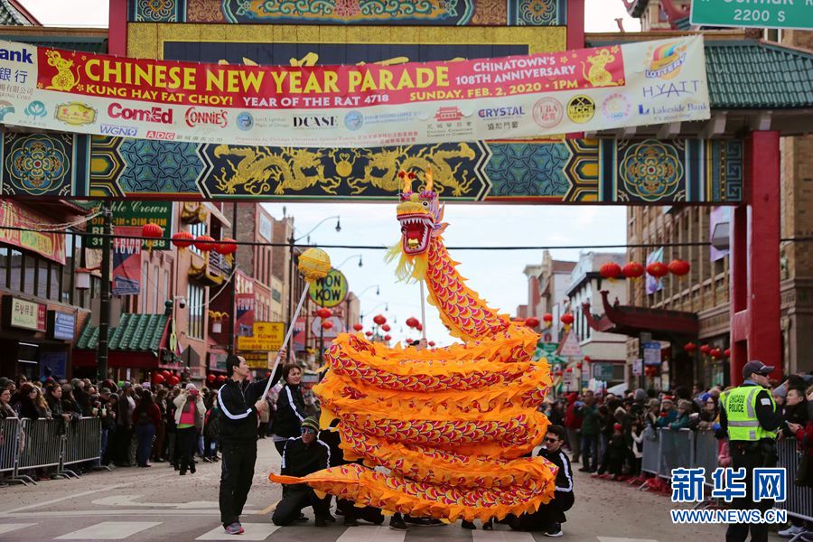 当地时间2月2日,舞龙队参加游行活动。据游行组织方介绍,今年共有28支游行队伍、13辆花车、7个舞龙舞狮队阵和9支鼓乐队参加游行,吸引当地一万多名民众前来观看。记者 汪平 摄
