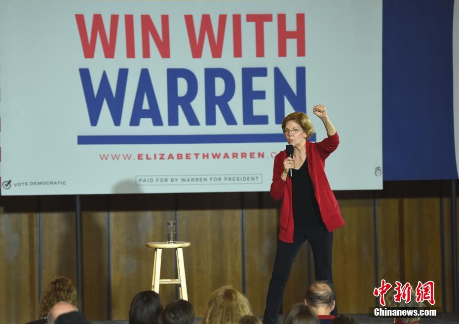 当地时间2月2日,美国民主党总统竞选人、联邦参议员伊丽莎白·沃伦在艾奥瓦州首府得梅因附近的艾姆斯举行竞选造势活动。美国2020年总统大选首战——艾奥瓦州党团会议投票将于2月3日举行。中新社记者 陈孟统 摄