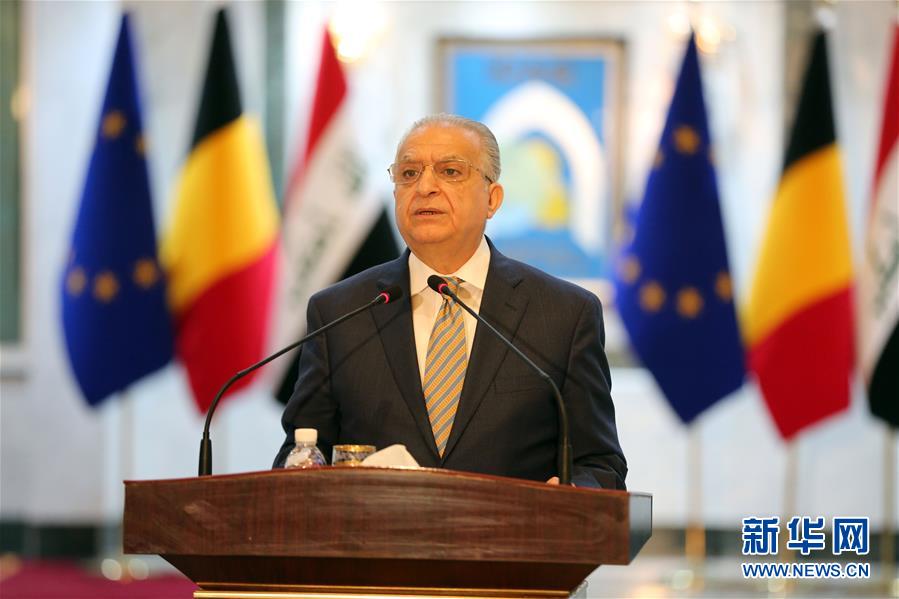 2月3日,在伊拉克首都巴格达,伊拉克外长哈基姆在联合新闻发布会上讲话。 当日,伊拉克外长哈基姆与到访的比利时外交与国防大臣菲利普·戈芬在巴格达举行会谈,双方讨论了双边关系以及打击恐怖主义等问题。 新华社发(哈利勒·达伍德摄)