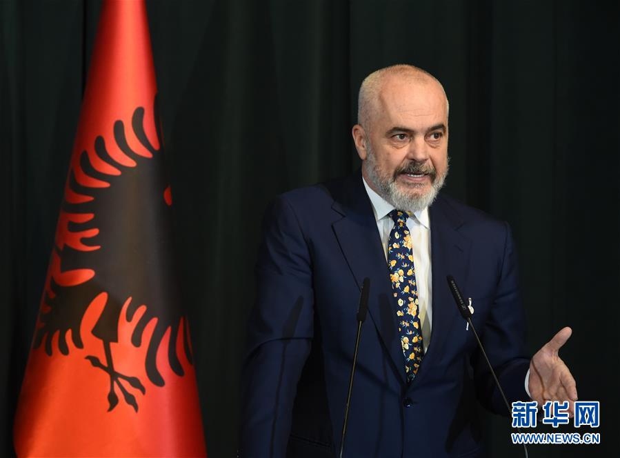 2月3日,在阿尔巴尼亚首都地拉那,阿尔巴尼亚总理拉马在联合新闻发布会上讲话。 当日,欧洲议会议长萨索利说,阿尔巴尼亚加入欧盟的进程应该恢复,欧洲议会坚定支持开启阿尔巴尼亚入盟谈判。 新华社记者 张立云 摄