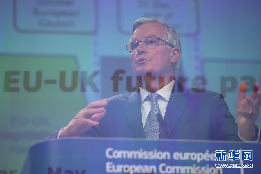 2月3日,在比利时布鲁塞尔欧盟总部,负责英国“脱欧”事务的欧盟首席谈判代表米歇尔·巴尼耶在记者会上发言(多重曝光)。 负责英国“脱欧”事务的欧盟首席谈判代表米歇尔·巴尼耶3日召开记者会表示,欧盟准备与英国达成紧密的贸易关系,但双方关系要平等。 新华社记者 张铖 摄