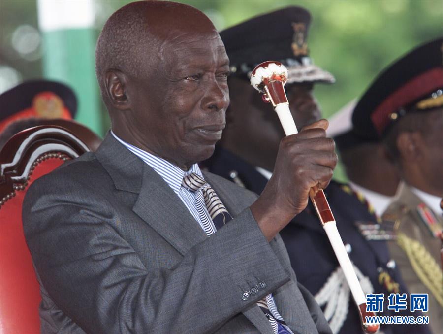 肯尼亚前总统丹尼尔·阿拉普·莫伊2020年2月4日在内罗毕去世,享年95岁。 这是2002年12月28日莫伊(前)在首都内罗毕西郊的一座军营检阅仪仗队时的资料照片。 新华社记者 徐显辉 摄