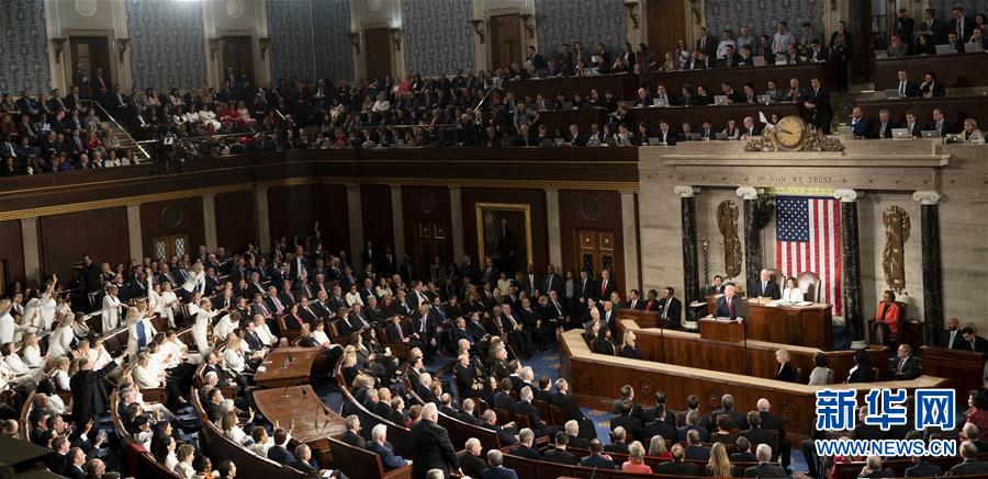 2月4日,在美国首都华盛顿,美国总统特朗普在国会发表国情咨文演讲。 新华社记者刘杰摄