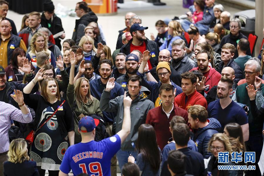 2月3日,在美国艾奥瓦州得梅因,选民参加民主党党团会议。 根据美国艾奥瓦州民主党4日公布的部分投票结果,民主党总统竞选人布蒂吉格和桑德斯在美国总统选举民主党首场预选中领先。 新华社记者李木子摄