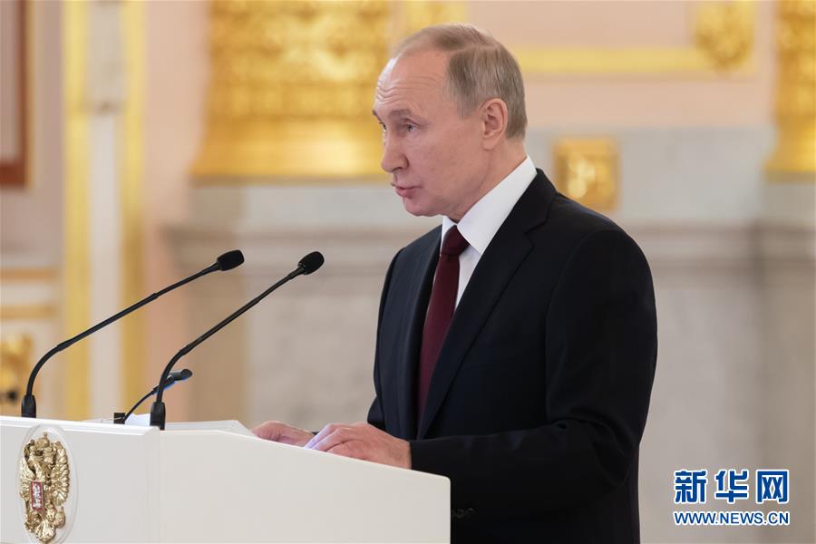 2月5日,在俄罗斯首都莫斯科,俄总统普京在国书递交仪式上致辞。 当日,普京在克里姆林宫接受23国新任驻俄大使递交国书。普京在致辞中表示,俄方愿就军控及和平解决地区危机等问题与美国进行对话。 新华社记者 白雪骐 摄