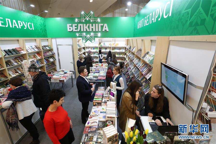 2月5日,在白俄罗斯首都明斯克,人们在国际书展上选购图书。 当日,第27届明斯克国际书展在明斯克开幕,来自30个国家的约400家出版机构参展。 新华社发(任科夫 摄)