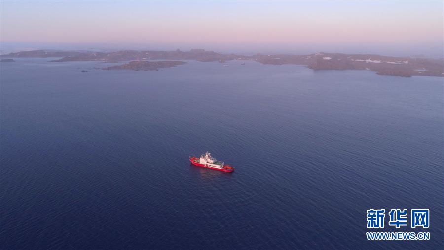 2月7日,“雪龙2”号抵达南极长城站附近海域(无人机照片)。 新华社记者 刘诗平 摄