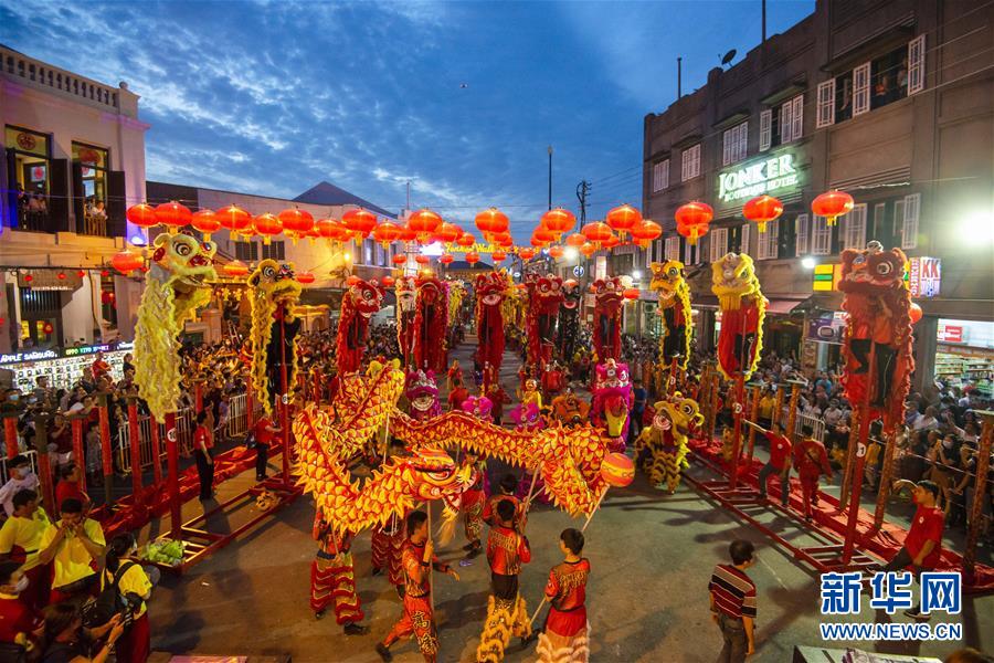 2月8日,人们在马来西亚马六甲参加舞龙、舞狮表演。 当日,马来西亚马六甲举行高桩舞狮表演,庆祝正月十五元宵节。 新华社发(张纹综 摄)