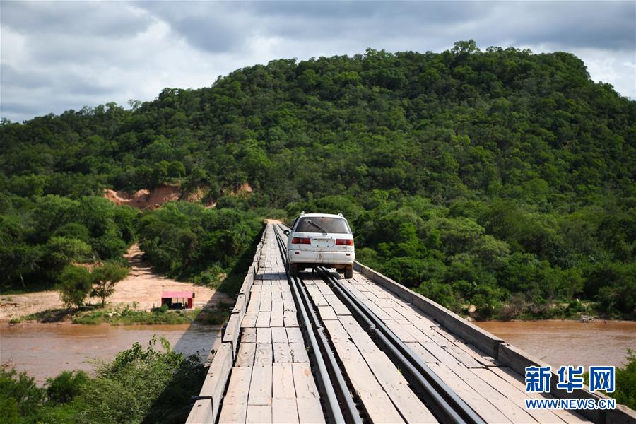2月6日,在玻利维亚圣安东尼奥,一辆汽车缓慢通过原来的老铁路桥。新华社记者 辛悦卫 摄