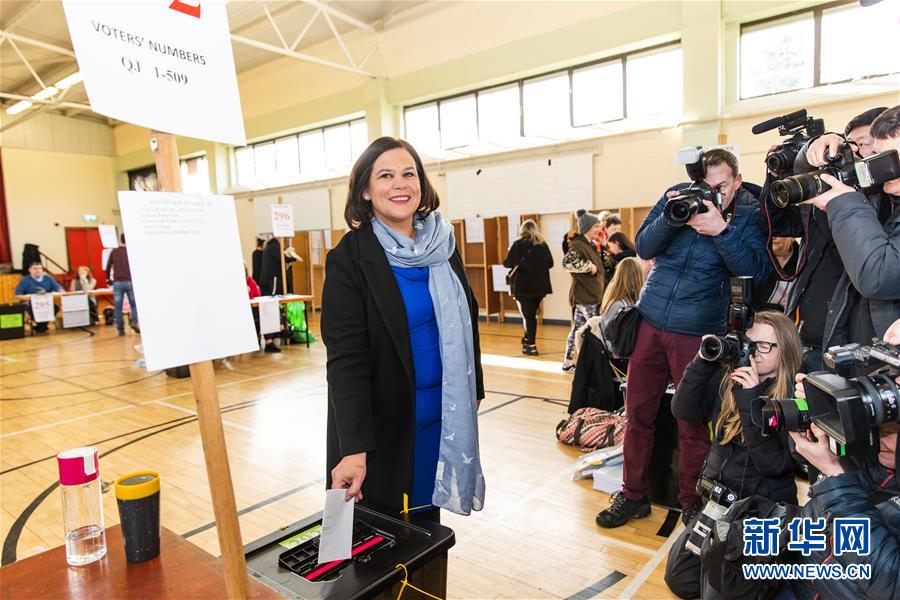 2月8日,在爱尔兰首都都柏林,新芬党领导人玛丽·麦克唐纳在投票站投票。 爱尔兰8日举行大选。多个民调结果显示,由现任总理瓦拉德卡领导的执政党统一党在本次大选中面临两大反对党,即共和党和新芬党的严峻挑战。 新华社发