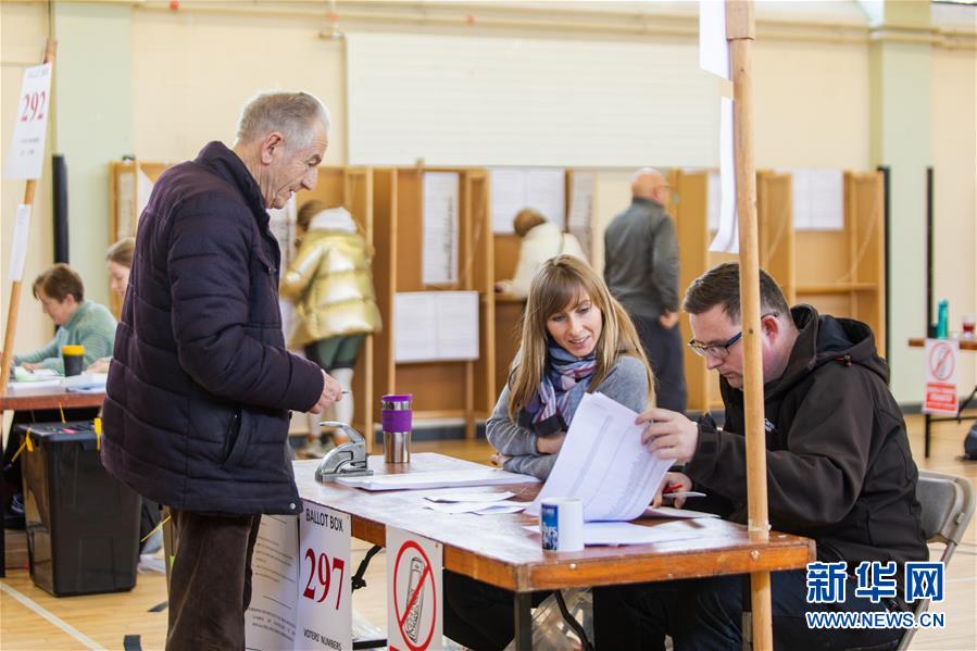 2月8日,在爱尔兰首都都柏林,选民在投票站投票。 爱尔兰8日举行大选。多个民调结果显示,由现任总理瓦拉德卡领导的执政党统一党在本次大选中面临两大反对党,即共和党和新芬党的严峻挑战。 新华社发