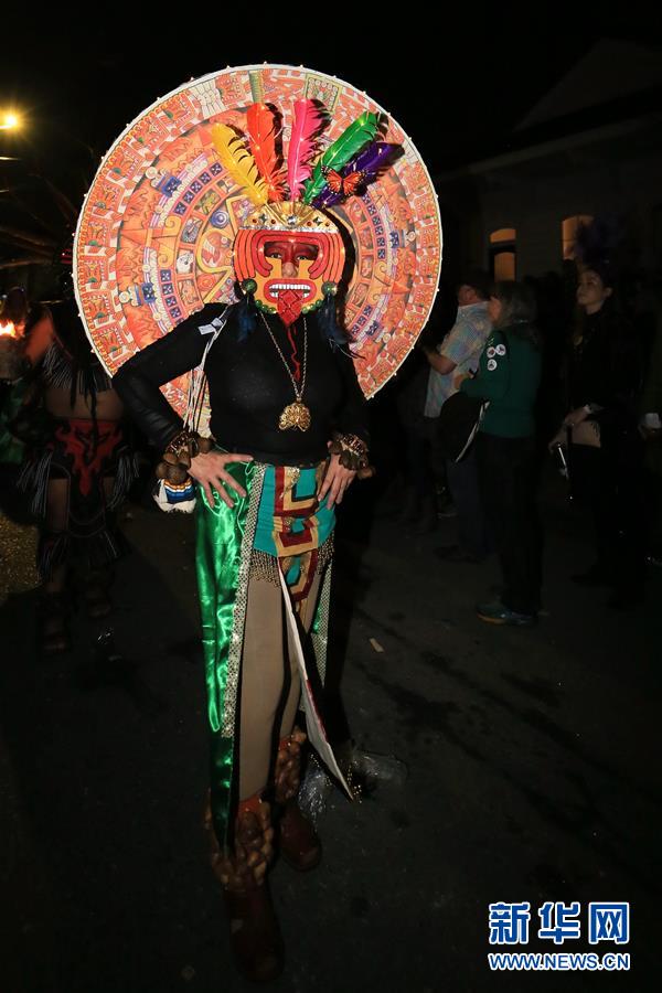 2月8日,在美国路易斯安那州新奥尔良,一名演员参加狂欢节游行。 新华社发(魏兰摄)