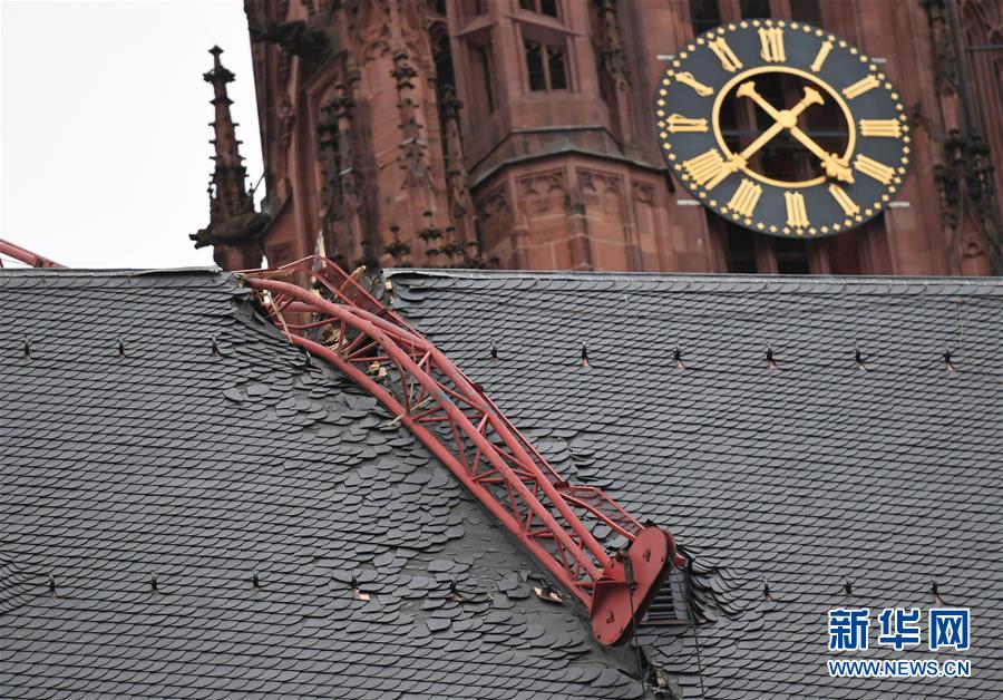 这是2月10日拍摄的德国法兰克福大教堂受损顶部。 新华社记者 逯阳 摄