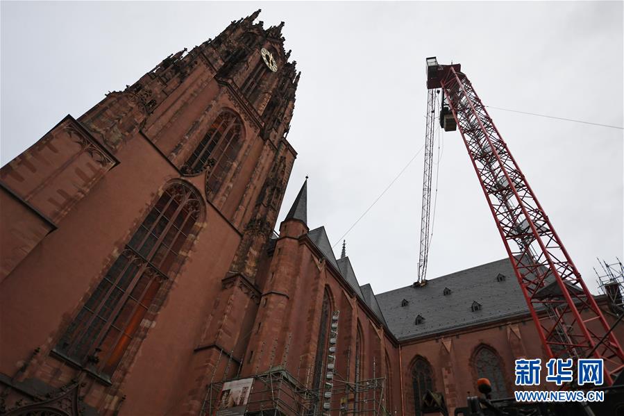 这是2月10日拍摄的德国法兰克福大教堂受损顶部。 新华社记者 逯阳 摄