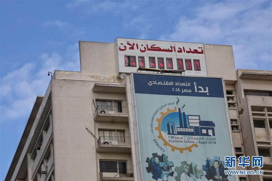 2月11日,在埃及首都开罗的埃及中央公众动员和统计局大楼上,实时数据显示埃及国内人口总数突破1亿。 新华社发(穆罕默德·拉伊摄)