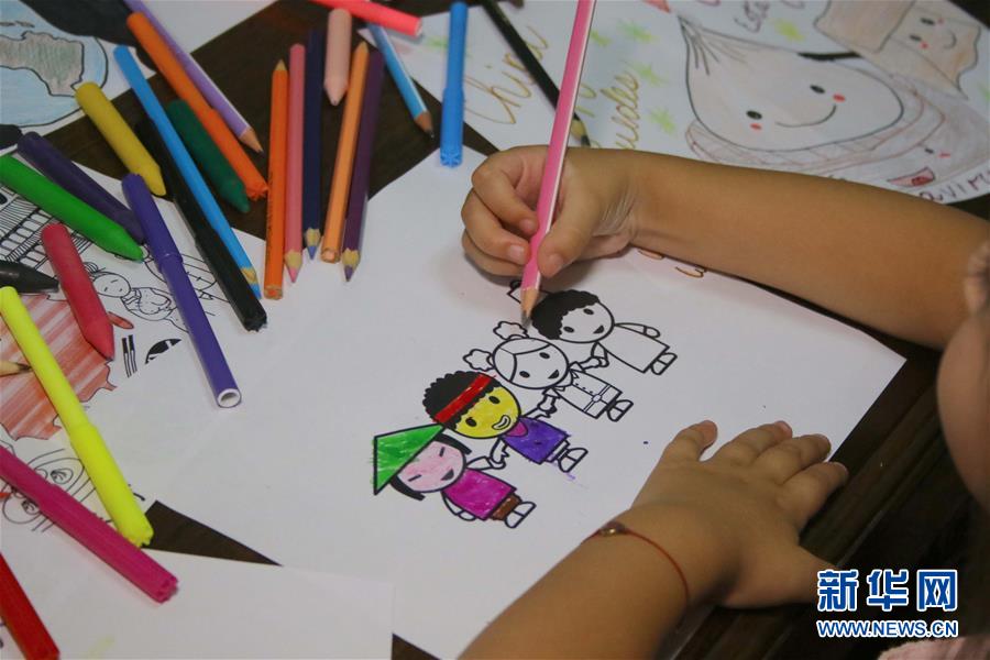 2月10日,在智利首都圣地亚哥,5岁的女孩达娜·苏亚雷斯在作画。 新华社发(马里奥·达维拉摄)