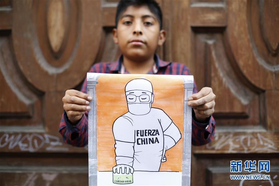 中国和拉丁美洲虽然距离遥远,但民心相通,当地民众关注着中国抗击新冠肺炎疫情的消息。在一些国家,孩子们拿起画笔,描绘出他们对中国的支持和鼓励,送上了远方的真挚祝福。 2月7日,在墨西哥首都墨西哥城,11岁的何塞·埃尔南德斯用画作表达对中国的支持。他在画中写道:“加油中国!” 画中的医生用手压住了绿色的冠状病毒。 新华社发(弗朗西斯科·卡涅多摄)