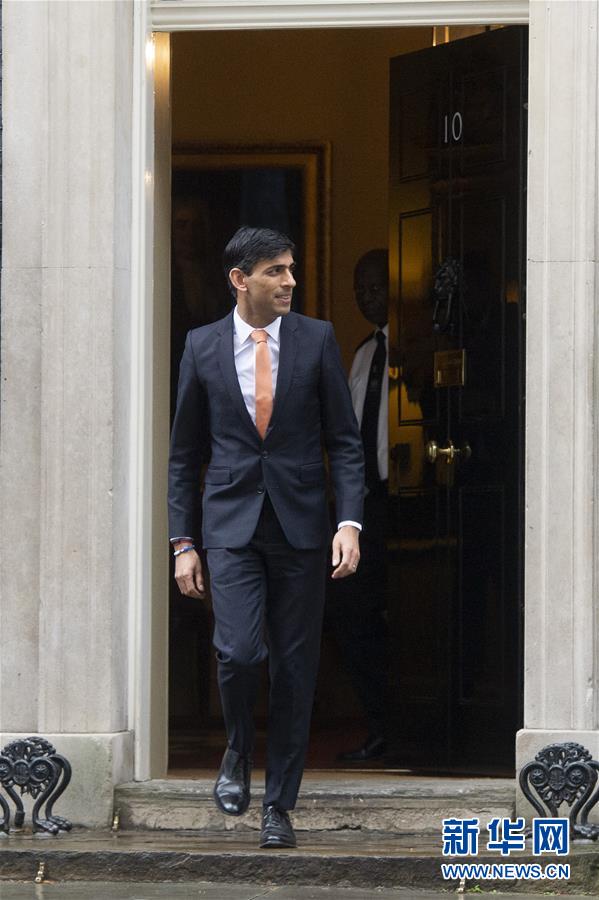 2月13日,在英国伦敦,新任命的英国财政大臣里希·苏纳克离开首相府。 当日,英国政府任命里希·苏纳克为财政大臣,接替当天辞职的赛义德·贾维德。这是英国正式“脱欧”后首次重要内阁成员变动。 新华社发(雷伊·唐摄)
