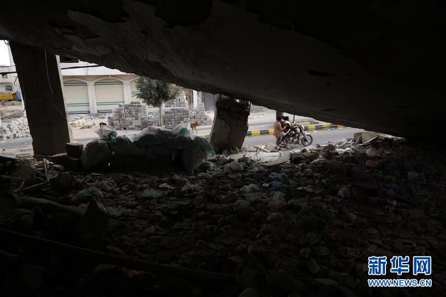 2月14日,在也门首都萨那,当地居民骑车经过一处房屋废墟。 据联合国统计,也门冲突迄今已造成近2万名平民丧生,近2400万人需要人道主义援助,相当于全国人口总数的80%。 新华社发(穆罕默德 摄)