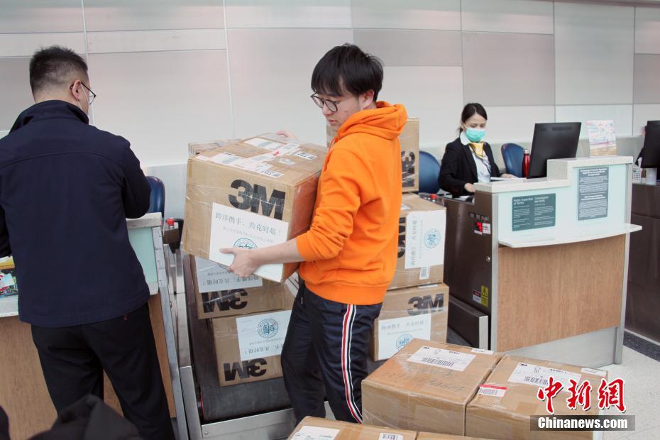 当地时间2月15日,复旦大学多伦多校友会及多伦多当地华侨华人捐赠的一批防护服、护目镜等医用防护物资在多伦多国际机场办妥上机手续,将发往武汉、上海等地。新冠肺炎疫情发生以来,加拿大各地华侨华人持续以捐款捐物等各种方式、通过各种渠道积极支持祖(籍)国和家乡抗疫。航空公司为这些救援物资开通了运输绿色通道。 中新社记者 余瑞冬 摄