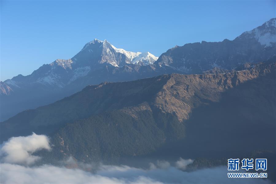 这是2月15日在尼泊尔苗地县的普恩山拍摄的喜马拉雅山脉。 普恩山海拔3210米,是尼西北部安娜普尔纳地区众多徒步线路上一个重要地点,攀登难度不大,拥有观赏喜马拉雅山脉的极佳位置,每年吸引大批徒步爱好者前往。 新华社记者 周盛平 摄