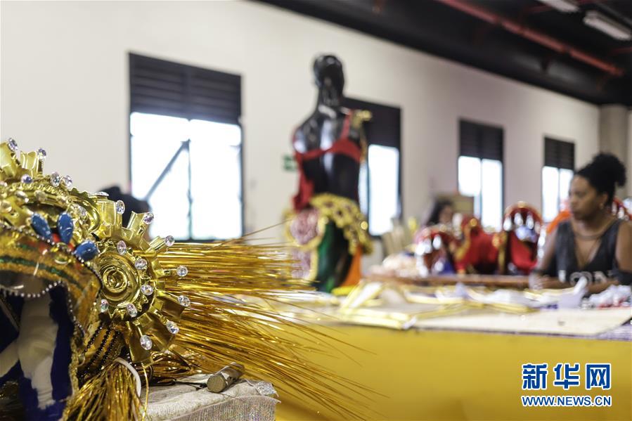 2月14日,巴西圣保罗著名桑巴舞校“玛丽亚镇联合”的工作人员在工坊里制作演出服。新华社发(拉赫尔·帕特拉索摄)