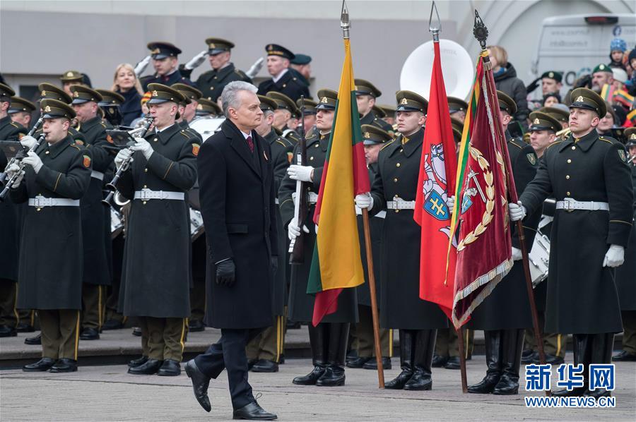 2月16日,立陶宛总统瑙塞达(前)在首都维尔纽斯举行的庆祝独立日活动中检阅仪仗队。 立陶宛16日举行活动庆祝独立102周年。1918年2月16日,立陶宛正式宣布独立,结束了德国占领。 新华社发(阿尔弗雷达斯·普里亚迪斯 摄)