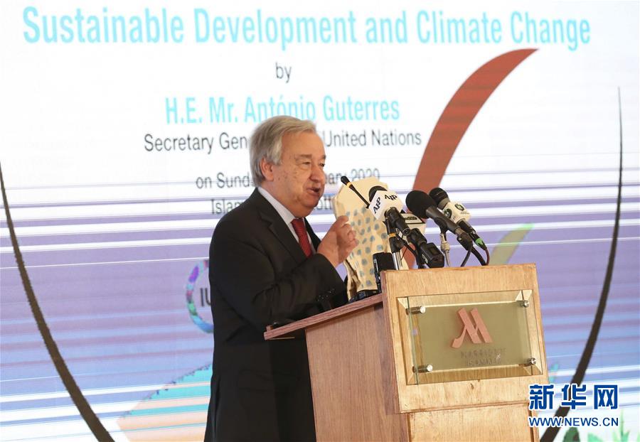 2月16日,在巴基斯坦伊斯兰堡,联合国秘书长古特雷斯发表演讲。 当天,古特雷斯在伊斯兰堡发表了有关气候变化和可持续发展的演讲,呼吁世界各国努力应对气候变化这一最为重大和紧迫的问题。 新华社记者 刘天 摄