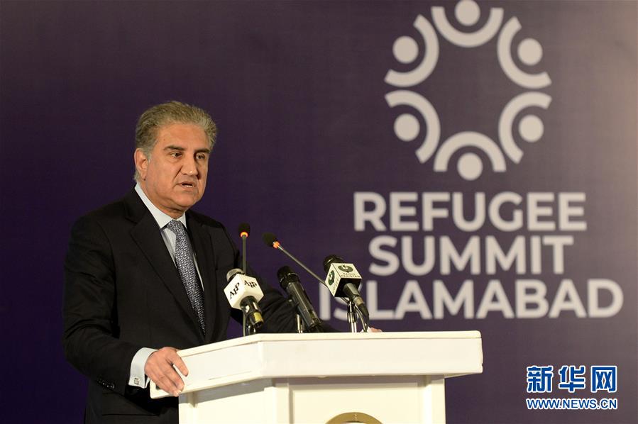 2月18日,在巴基斯坦伊斯兰堡,巴基斯坦外长库雷希在闭幕会议上讲话。 当日,由巴基斯坦和联合国难民署共同举办、为期两天的阿富汗难民问题国际会议在伊斯兰堡闭幕。 新华社发(艾哈迈德·卡迈勒 摄)
