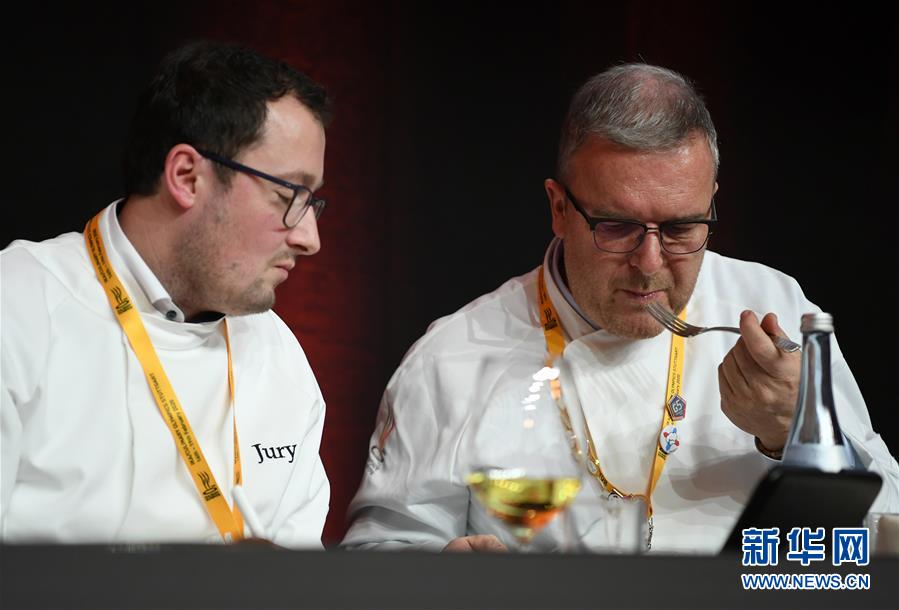 2月18日,在德国斯图加特举行的第25届世界奥林匹克烹饪大赛上,两名裁判评判各参赛代表队制作完成的菜品。 为期6天的第25届世界奥林匹克烹饪大赛19日在德国斯图加特落幕。中国队不仅在比赛中取得佳绩,更向世界传递了可持续发展理念。 新华社记者 逯阳 摄