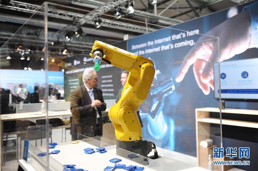这是2月19日在德国柏林拍摄的“互联世界”物联网大会国际展商的展台。 为期两天的2020年度“互联世界”物联网大会19日在德国首都柏林拉开帷幕。 新华社记者 严锋 摄
