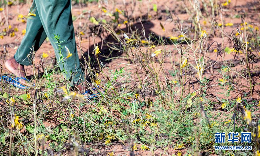 这是2月20日在肯尼亚基图伊一处农场拍摄的蝗虫。 近几个月来,非洲多国遭受沙漠蝗虫灾害,其中埃塞俄比亚、吉布提、索马里为25年来最严重,而肯尼亚为70年来最严重。目前非洲之角的蝗虫还在不断繁殖,在3月和4月会形成新的蝗虫群,恐进一步加剧灾情。 新华社记者 张宇 摄