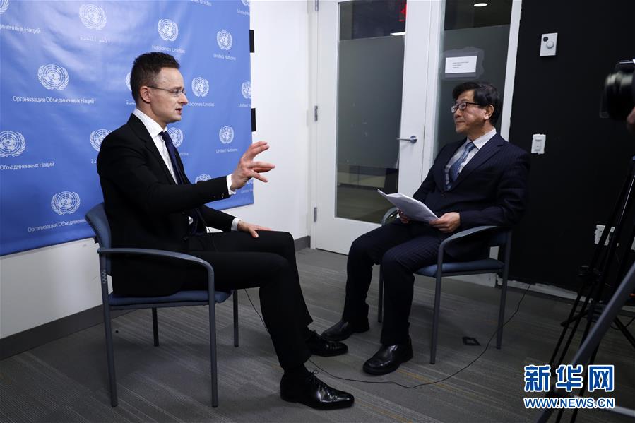 2月20日,在位于纽约的联合国总部,匈牙利外交与对外经济部部长彼得·西亚尔托(左)接受新华社记者专访。 匈牙利外交与对外经济部部长彼得·西亚尔托20日在纽约联合国总部出席会议后接受新华社记者专访时表示,匈牙利非常敬重中国为抗疫付出的艰辛努力,并坚信中国能够取得抗疫的最后胜利。 新华社记者 李木子 摄