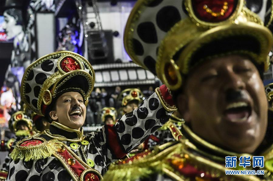 2月22日凌晨,巴西圣保罗桑巴舞校的演员参加狂欢节巡游。 2月21日深夜至22日清晨,2020年巴西圣保罗狂欢节桑巴舞校巡游开幕,7支特级组桑巴舞校的队伍在桑巴大道献上精彩表演。在接下来的三天中,还会有7支特级组队伍、8支甲级组队伍和12支乙级组队伍进行表演。 新华社发(拉赫尔·帕特拉索 摄)