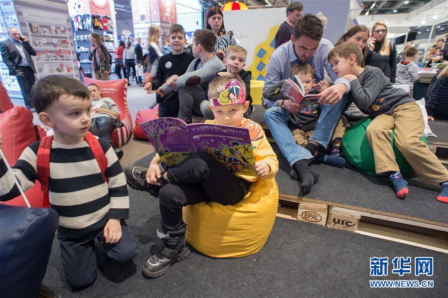 2月23日,在立陶宛首都维尔纽斯,小朋友在国际书展上的儿童区看书。 该书展每年举办一次,是波罗的海地区规模最大的书展。今年的书展从20日开始,持续至23日。 新华社发(阿尔弗雷达斯·普里亚迪斯摄)