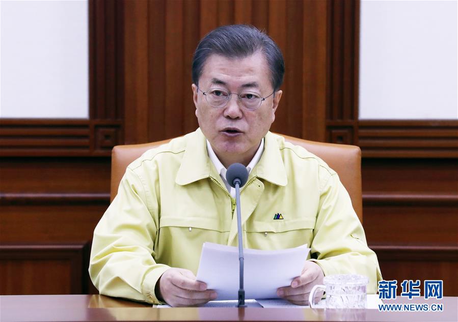 2月23日,在韩国首尔,韩国总统文在寅在新冠肺炎对策会议上讲话。 新华社/纽西斯通讯社