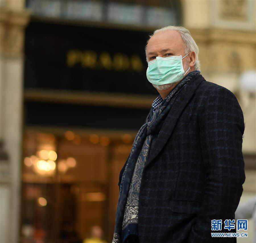 2月24日,在意大利米兰,一名男子戴着口罩出行。 意大利政府24日宣布,截至当地时间24日21时,新冠病毒感染病例数量升至229例,其中有7个死亡病例。目前被感染人群中,27人在重症监护室接受治疗,101人入院接受普通治疗,94人居家隔离。据悉,大部分病例出现在意大利北部的伦巴第大区,有关地区已采取了暂时关闭学校等措施。 新华社发(马斯科洛摄)