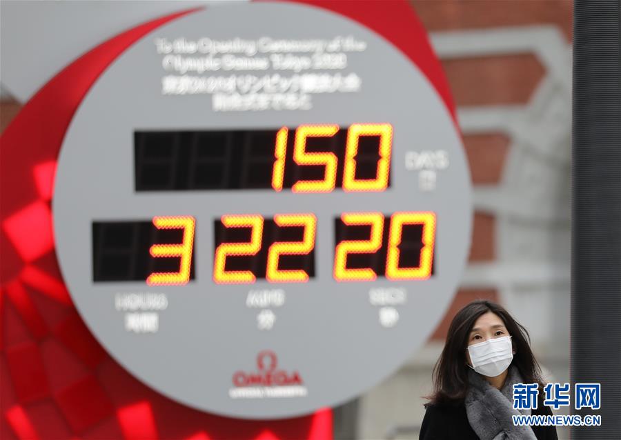 2月25日,在日本东京,行人戴口罩经过显示东京奥运会倒计时的电子屏。 日本厚生劳动省24日晚宣布,当天日本各地新增13例新冠病毒感染病例,其中包括负责“钻石公主”号邮轮检疫工作的2名厚生劳动省职员。将“钻石公主”号邮轮上确诊的691个病例计算在内,日本确诊病例总数达到851例,其中日本厚生劳动省职员及检疫官有7人。 新华社记者杜潇逸摄
