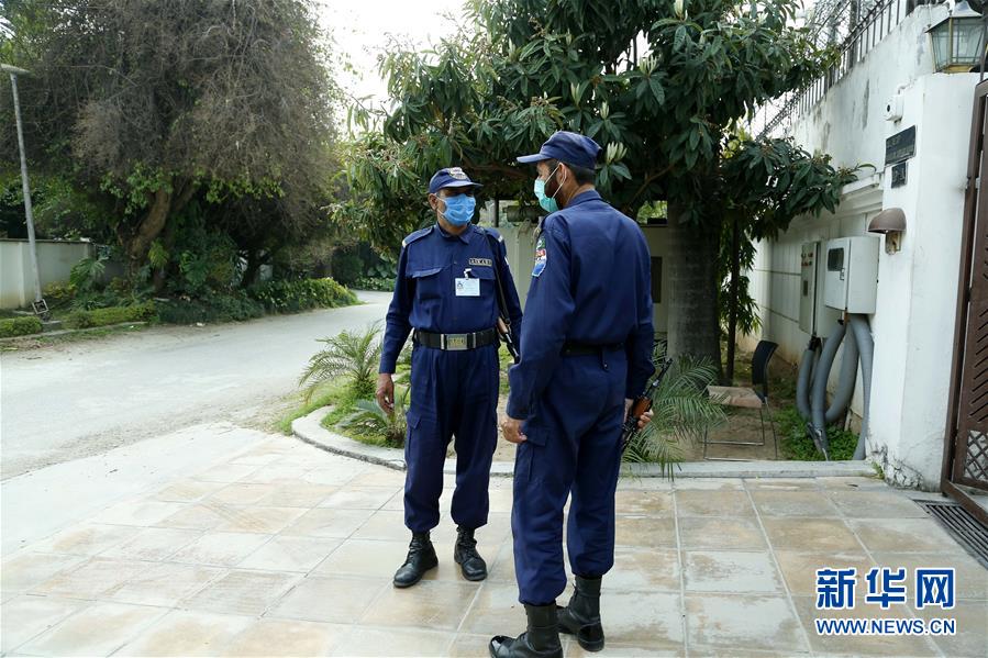 2月27日,在巴基斯坦伊斯兰堡,安保人员戴口罩工作。 巴基斯坦负责国家卫生服务的总理特别助理扎法尔·米尔扎26日说,巴基斯坦出现2例新冠病毒感染病例,两人均有伊朗旅行史。这是该国首次出现确诊病例。巴基斯坦医学科学院发言人瓦西姆·赫瓦贾当天告诉新华社记者,他们接收了一名来自北部吉尔吉特-伯尔蒂斯坦地区的患者。另一名患者在南部港口城市卡拉奇确诊。 新华社发(艾哈迈德·卡迈勒摄)
