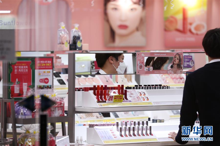 2月27日,在韩国首尔,明洞一家化妆品店的店员在整理货架。 韩国疾病管理本部28日发布的统计数据显示,韩国新增256例新冠病毒感染病例,累计确诊病例增至2022例。 新华社记者 王婧嫱 摄