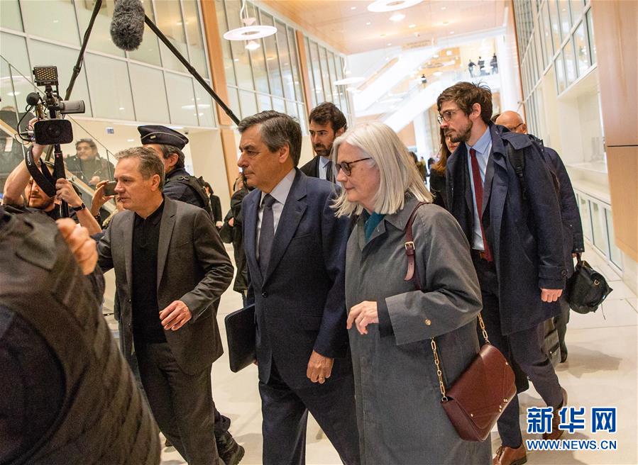 2月26日,在法国巴黎,法国前总理弗朗索瓦·菲永(前右二)和妻子佩妮洛普·菲永(前右一)抵达法院。 法国前总理弗朗索瓦·菲永夫妇因“吃空饷”嫌疑接受法庭审理。检察机关指控菲永滥用公共基金,给家人安排虚职以获取不当收入和侵吞企业资产。菲永否认这些指控。 新华社发(奥雷利安·莫里萨尔摄)