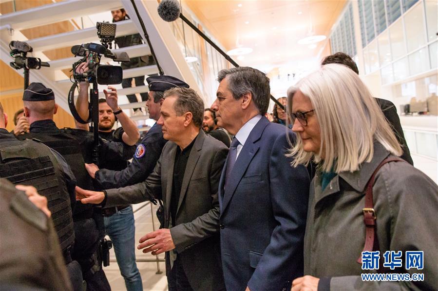 2月26日,在法国巴黎,法国前总理弗朗索瓦·菲永(右二)和妻子佩妮洛普·菲永(右一)抵达法院。 法国前总理弗朗索瓦·菲永夫妇因“吃空饷”嫌疑接受法庭审理。检察机关指控菲永滥用公共基金,给家人安排虚职以获取不当收入和侵吞企业资产。菲永否认这些指控。 新华社发(奥雷利安·莫里萨尔摄)