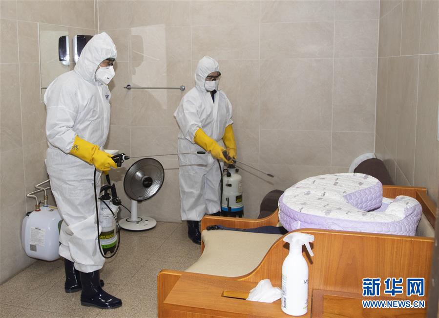 2月28日,在韩国首尔,工作人员在光化门地铁站进行消毒。 韩国疾病管理本部28日发布的统计数据显示,截至当地时间下午4时,韩国较前一日新增571例新冠病毒感染病例,累计确诊病例增至2337例。 新华社发(李相浩摄)
