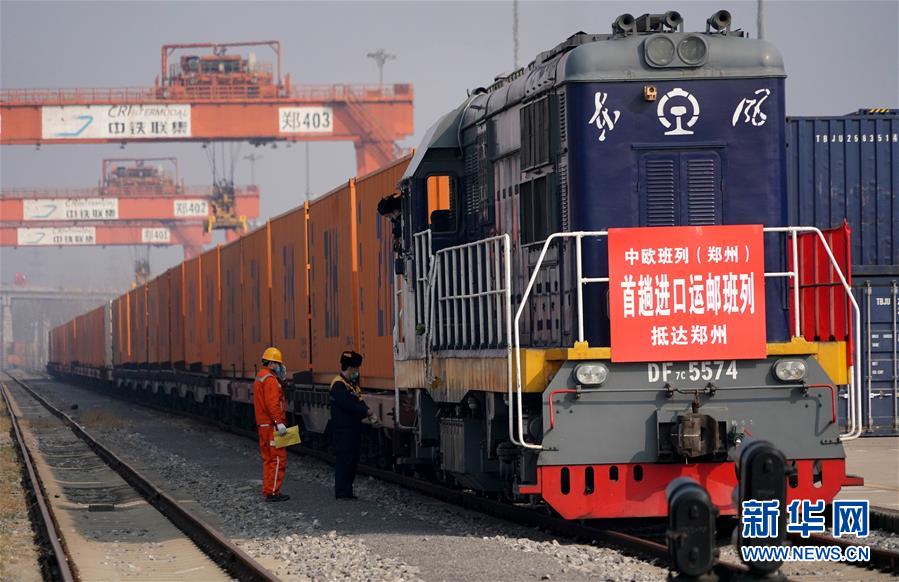 2月28日,运载6896件进口邮件的中欧班列(郑州)列车抵达中铁联集郑州中心站。 当日,一列从德国汉堡发出,运载6896件进口邮件的中欧班列(郑州)列车抵达中铁联集郑州中心站,这标志着中欧班列(郑州)实现运邮往返贯通。据介绍,2018年11月20日,中欧班列(郑州)国际运邮去程班列实现常态化运营。时隔15个月后,迎来国际运邮返程班列。 新华社记者李安摄