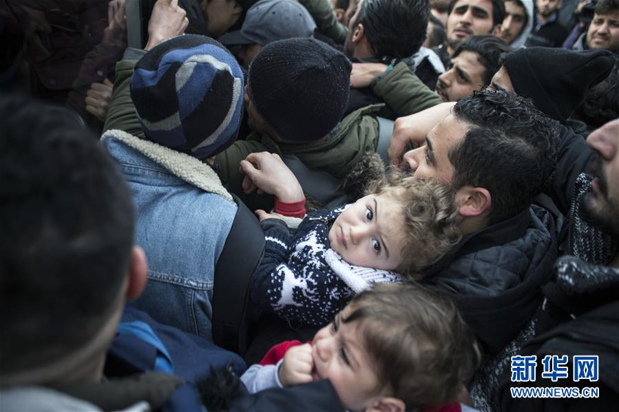 2月28日,在土耳其伊斯坦布尔,难民和非法移民试图登上前往土耳其与希腊边境的车辆。新华社发
