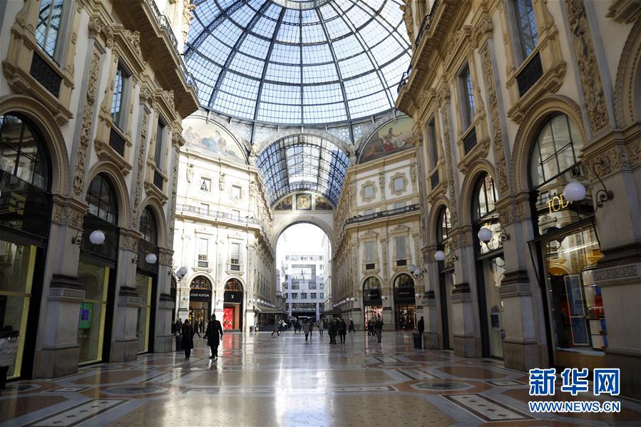 2月28日,意大利米兰的地标建筑维托里奥·埃马努埃莱二世拱廊内行人稀少。新华社发(阿尔贝托·林格里亚摄)